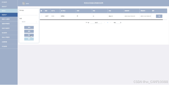 流浪动物救助系统平台中的管理人员是可以对前台注册的用户和管理员进行管理。系统用户管理界面如下图所示。