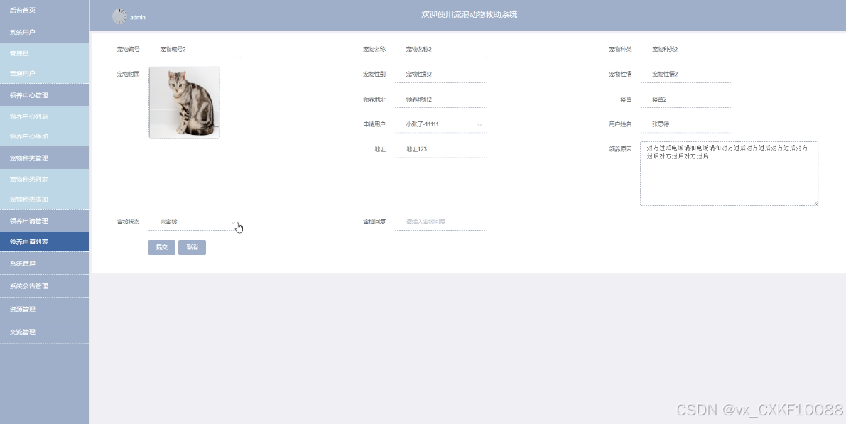 审核领养申请界面如下图所示。