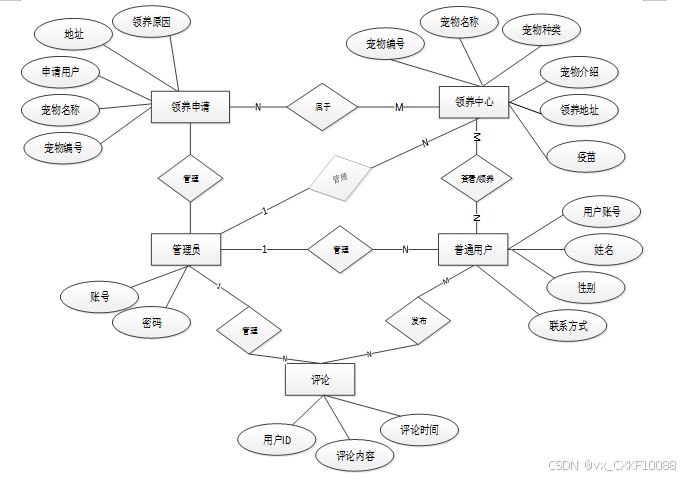 下面是整个流浪动物救助系统平台中主要的数据库表总E-R实体关系图。