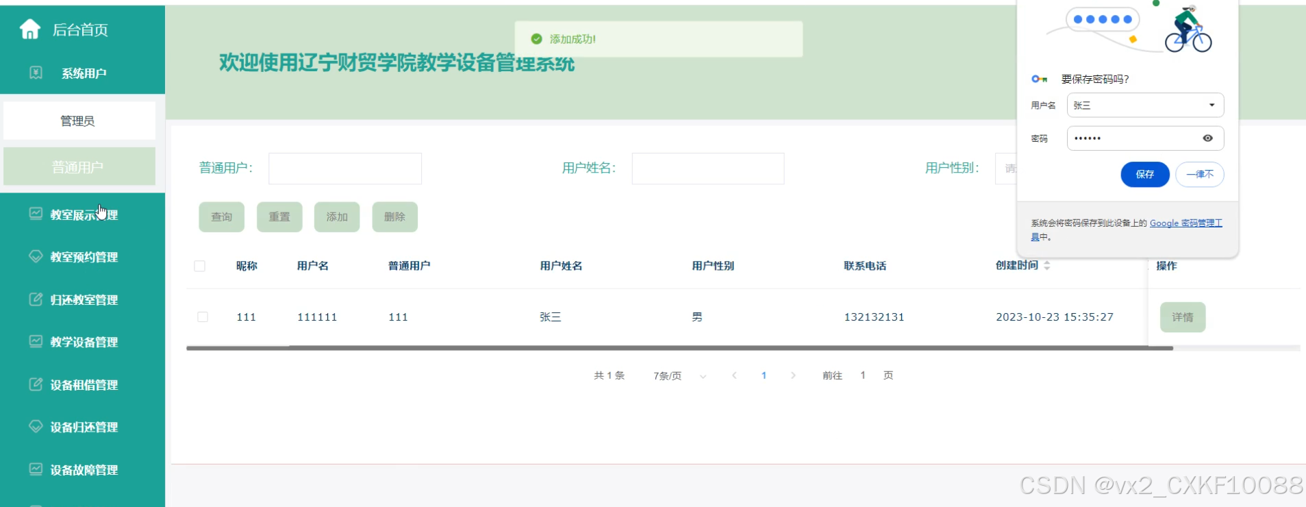 辽宁财贸学院教学设备管理系统中的管理人员是可以对小程序端注册的用户进行管理,详见图5-7。