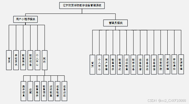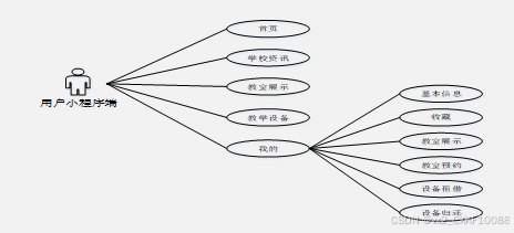 通过使用微信小程序的教学设备管理系统,我们可以实现多种功能,从而满足用户的各种需求。该系统的功能结构如图4-5所示,具有良好的完整性和可靠性。