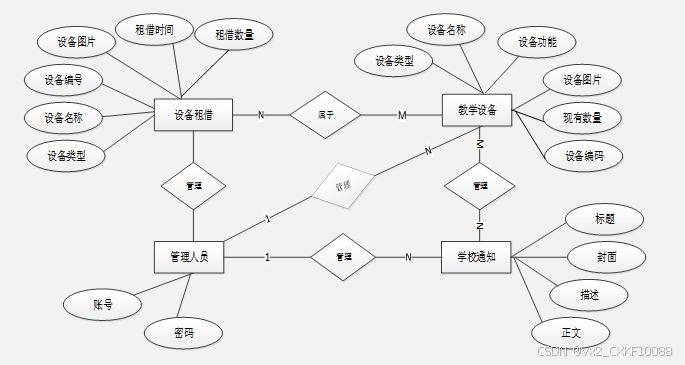 根据微信小程序的教学设备管理系统的特性,我们重新设计了数据库的概念模型,以满足其功能的需求,并且结构更加清晰明确。