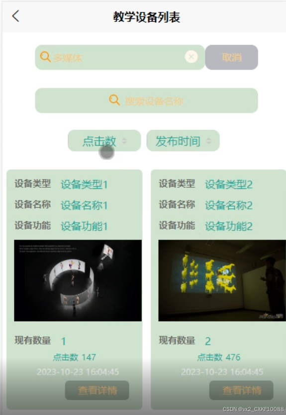 The teaching equipment management system of WeChat mini program aims to provide users with a simple, efficient, and convenient experience. It not only requires users to clearly view the required information, but also requires a well-designed interface to perfectly integrate functions and pages, thereby improving the operability of the system. Therefore, we need to conduct in-depth research on information content and utilize technological means to improve the teaching equipment management system.