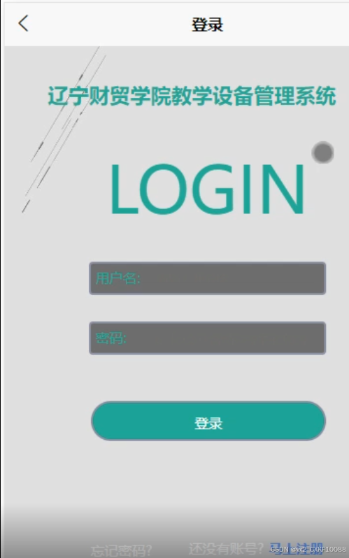 教学设备管理系统中的小程序上注册后的会员是可以通过自己的账户名和密码进行登录的,当用户输入完整的自己的账户名和密码信息并点击“登录”按钮后,将会首先验证输入的有没有空数据,再次验证输入的账户名+密码和数据库中当前保存的用户信息是否一致,只有在一致后将会登录成功并自动跳转到教学设备管理系统的首页中;否则将会提示相应错误信息。请参考图5-2。
