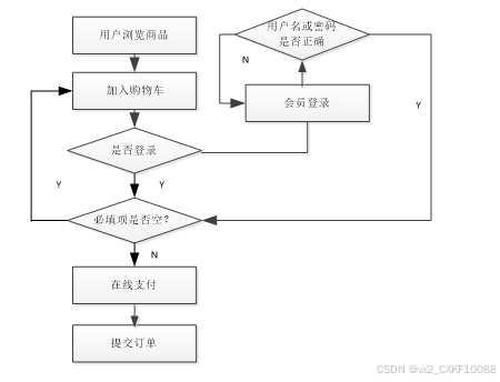 当访客点击了任意商城中心后将会进入该款商城中心的详情界面,可以了解到该商城中心的图片信息、分类信息、价钱信息等,同时可以对该商城中心进行收藏、点赞、加购、购买评论,商城中心详情展示页面如图5-7所示,购买流程图如图5-8所示。