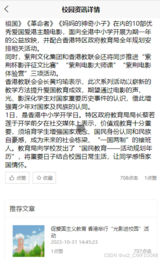 (4)校园资讯:用户可以在校园资讯页面进行资讯浏览查看等。