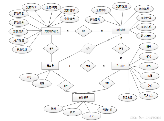 下面是整个动物领养管理平台中主要的数据库表总E-R实体关系图。