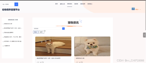 | 预期结果 | 可以查看到所有宠物资讯信息 |