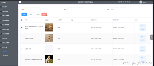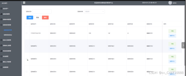 (3)宠物秀管理:管理员可以对宠物秀信息进行查询、添加、重置和删除操作。
