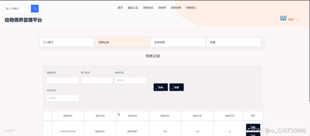 | 预期结果 | 可以在个人中心的领养记录查询领养申请信息 |