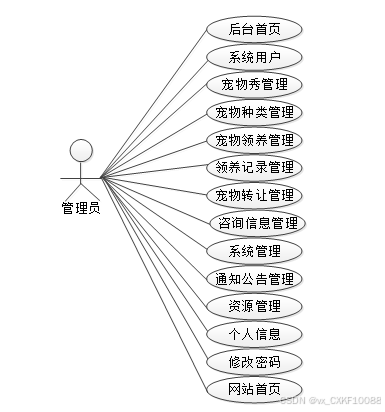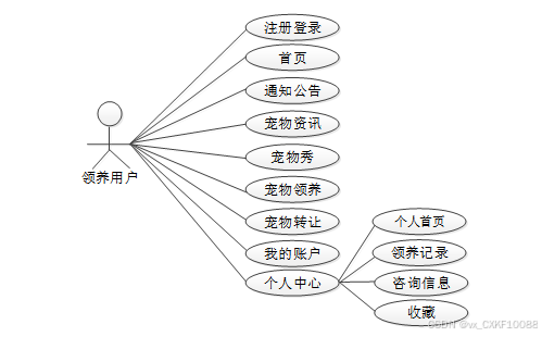 通过2.3功能的分析,得出了本动物领养管理平台的用例图:
