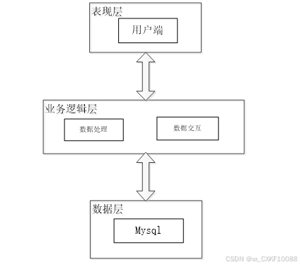 数据层(DL):由于本动物领养管理平台的数据是放在服务端的MySQL数据库中,因此本属于服务层的部分可以直接整合在业务逻辑层中,所以数据层中只有数据库,其主要完成本动物领养管理平台的数据存储和管理功能。