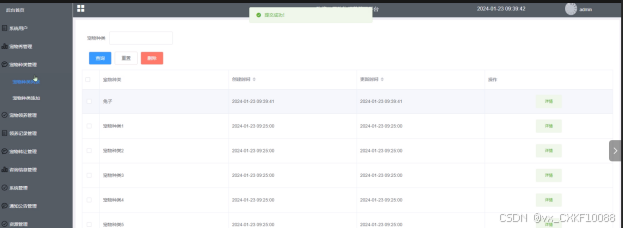 (4)宠物种类管理:管理员可以对宠物种类信息进行查询、添加、重置和删除操作。