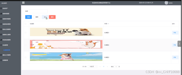 (9)系统管理:管理员可以对系统轮播图信息进行查询、添加、重置和删除操作。