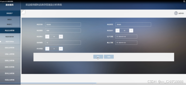 经历了近三个多月的动手实践及老师辛勤的指导和同学朋友热心的帮助下,本人的毕业设计便利店库存管理及分析系统的基本功能也基本完成。