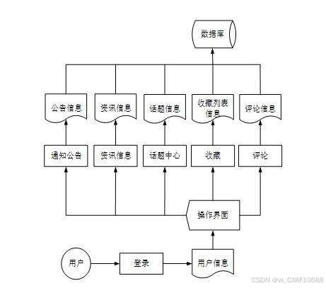 业务流程图不仅能反映出内部业务之间的关系,而且能体现出管理顺序及信息的流动。考公交流平台必须支持整个组织在不同层次上的各种功能,各个功能模块之间又有各种不同相关的信息进行联系,构成了一个有机的整体,根据考公交流平台的特点以及结合所面临的实际情况,设计出了系统的业务流程图。