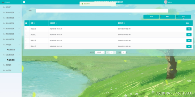 公告通知管理: 管理系统发布的通知和公告信息,包括添加、编辑和删除等操作。