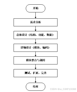 基于django的西安市热点景区推荐系统开发时,首先进行需求分析,进而对系统进行总体的设计规划,设计系统功能模块,数据库的选择等,本系统的开发流程如图2-1所示。