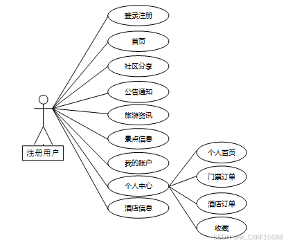 以上功能需求分析涵盖了注册用户和管理员两个角色在西安市热点景区推荐系统中的主要功能,以实现对景点信息、订单管理和用户交流的全面管理和监控。