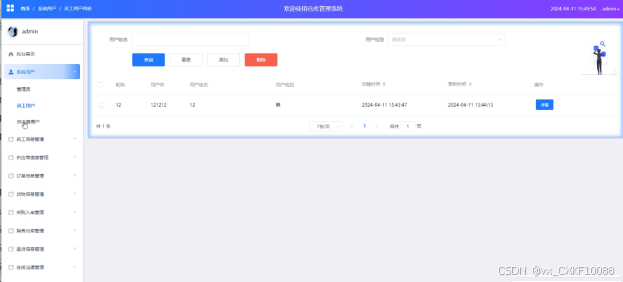 系统用户管理:管理员负责管理系统的用户,包括管理员和普通用户及供应商用户的登录、权限分配等操作。他们可以添加、编辑、删除或审核用户账户,并设定相应的权限。系统用户管理界面如下图所示。