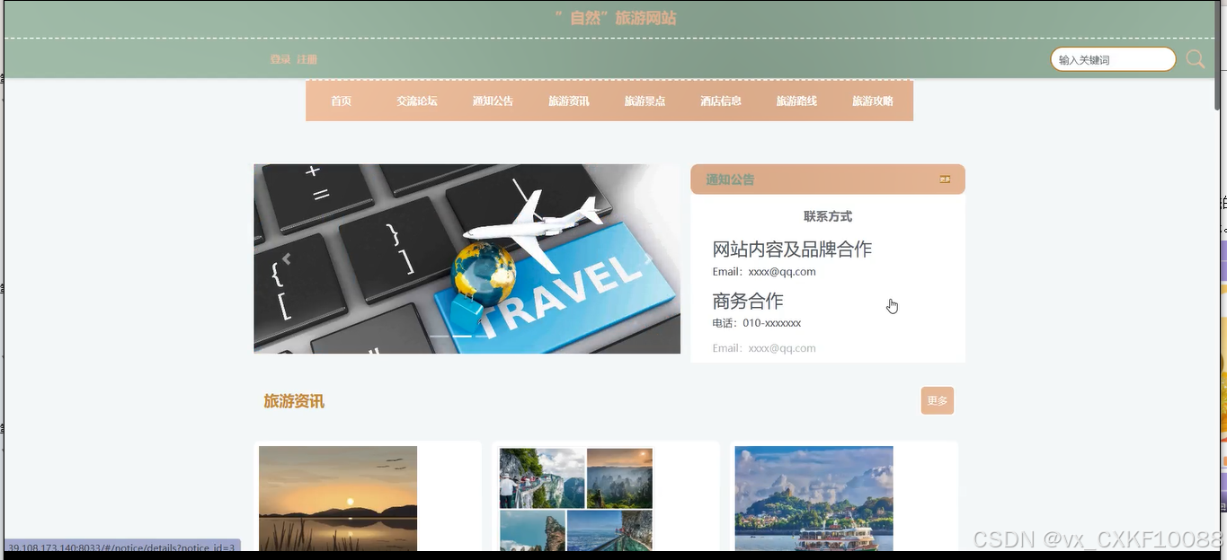 关键词:“自然”旅游网站;Java语言;springboot技术