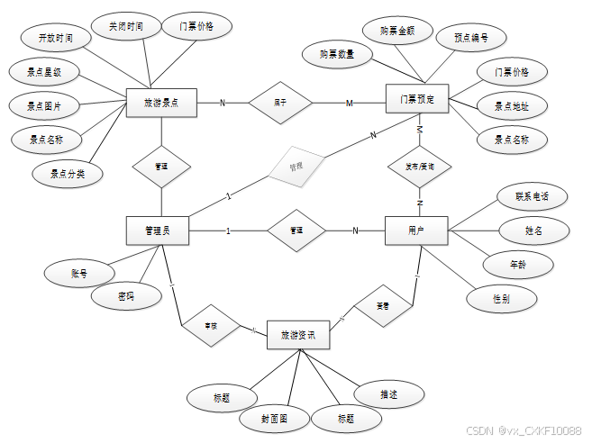 (7)旅游景点管理:用户可以根据景点类型浏览景点的信息,并选中某个景点查看详情,例如:景点名称、景点类型、景点分类、景点图片、联系电话、开放时间、关闭时间照片、门票价格等。