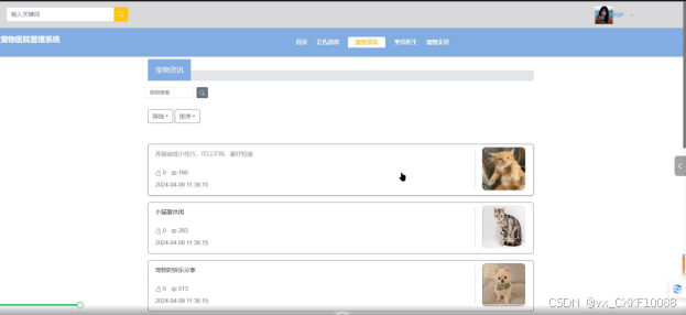 - 宠物资讯:用户可以查看宠物资讯列表中某个资讯的详情并可以点赞、收藏和评论。
