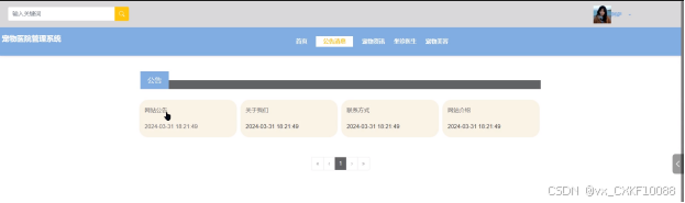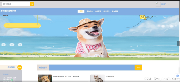 - 首页:用户可以查看首页展示的轮播图、公告消息、宠物资讯等信息。
