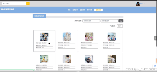 - 宠物美容:用户可以查看宠物美容列表中某个美容信息的详情并可以收藏。