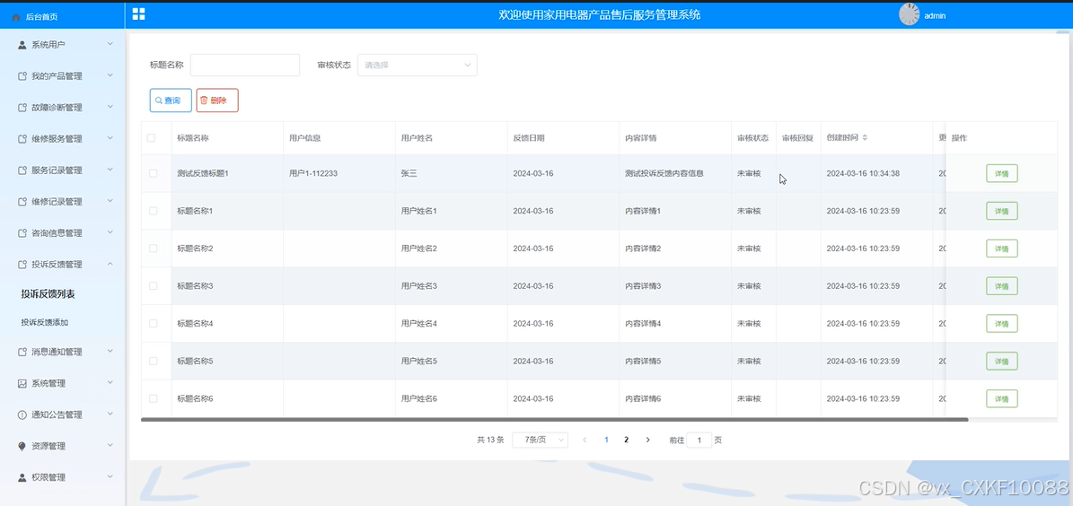 图5-12投诉反馈管理界面