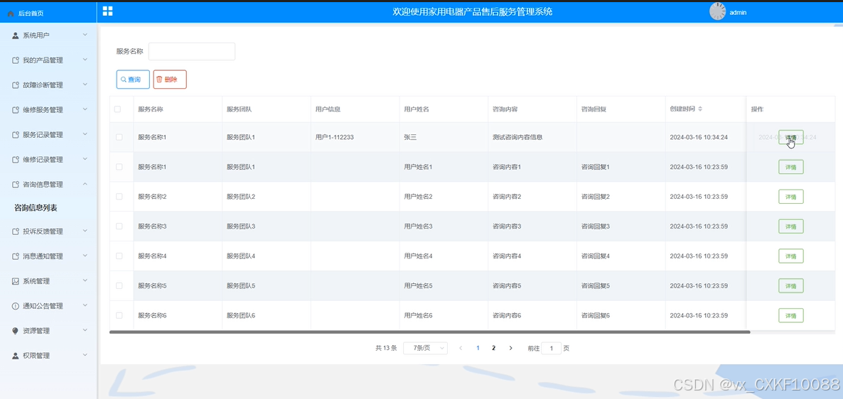 图5-13咨询信息管理界面