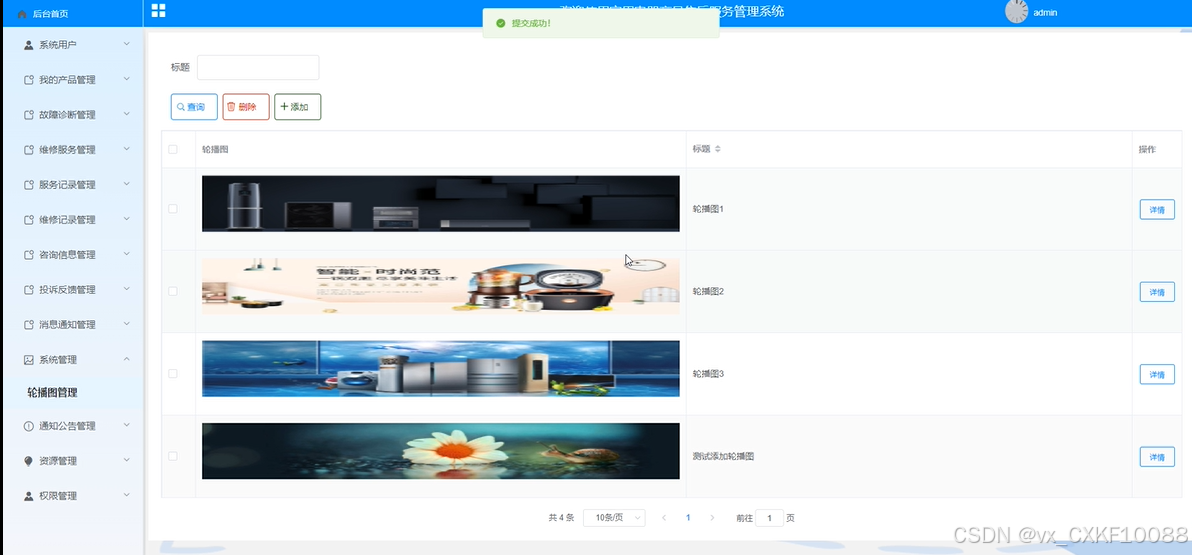 管理员可以管理系统的基本信息和设置,轮播图设置更换,添加或删除。界面如下图所示。