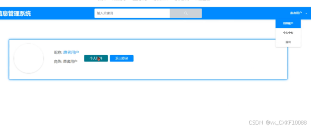 (9)个人中心管理: 提供个人中心功能,方便用户管理咨询信息、预约记录、感染信息、诊断信息等,用户可查看个人病历信息、治疗方案等,保持健康档案完整性,提高个人健康管理水平。
