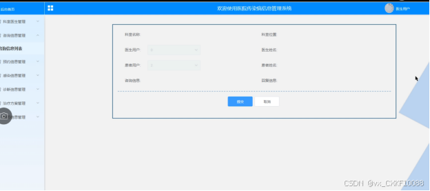 (3)咨询信息管理: 医生可以查看患者向自己提出的咨询信息列表,可在此功能下进行回复操作,提供患者及时的医疗建议和指导。