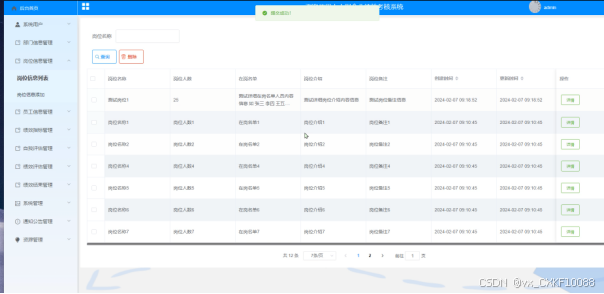 岗位信息管理:管理员可以管理不同岗位的信息,包括创建、编辑和删除岗位,设定岗位职责和权限等。