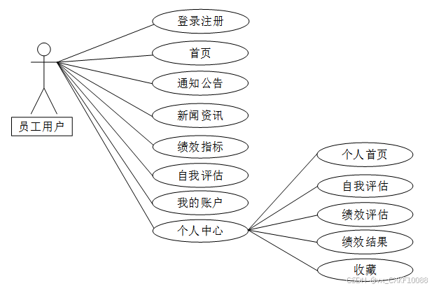 图2-1 基于django的中小型企业绩效考核系统员工用户角色用例图