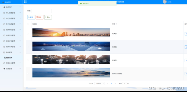 管理员点击“系统管理”这一菜单会显示轮播图这一个子菜单,管理员可以对前台展示的轮播图进行设置,界面如下图所示。