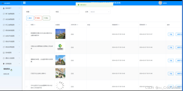 资源管理:管理员可以管理新闻资讯和资讯分类,包括发布、编辑和删除新闻资讯,分类管理等。