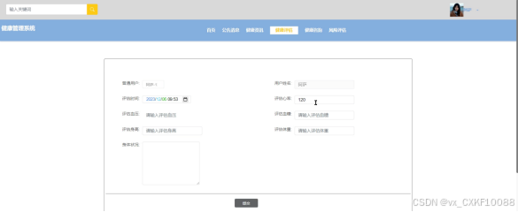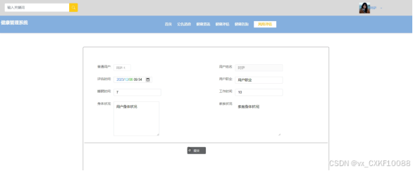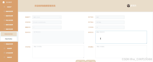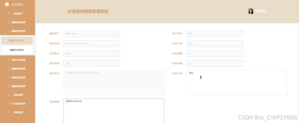 健康评估管理,管理员可以对用户的健康状况进行评估,如图4-9所示。
