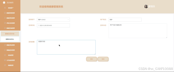 图4-10健康咨询管理界面图
