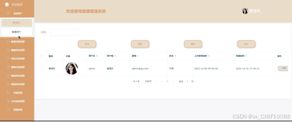6.管理员功能,管理员可以对用户或者用户健康档案进行管理。