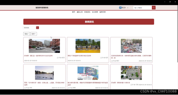 用户浏览系统发布的与停车行业相关的新闻和资讯内容。用户登录后,进入新闻资讯模块,浏览最新的行业资讯和相关新闻内容。用户可以阅读新闻文章、了解行业动态,获取停车领域的最新信息。这一功能丰富了用户的阅读内容,拓展了用户的知识视野,为用户提供更全面的停车服务信息和行业动态,提升用户的停车体验和服务满意度。界面如下图所示。