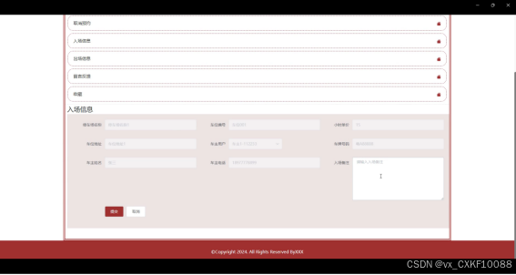 用户记录车辆的入场和出场信息。用户通过系统输入车辆相关信息,如车牌号、入场时间等,系统记录入场信息。当车辆准备离开时,用户再次输入相关信息记录出场时间。系统自动计算停车时长,并生成相应费用。用户可以方便地管理车辆的停车记录,了解停车时长和费用,实现快速、便捷的停车管理体验,提升用户的停车满意度。界面如下图所示。