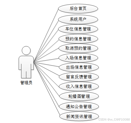 智慧停车管理系统中管理员用例图如图2.2所示: