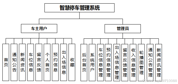 智慧停车管理系统旨在提供智能化、高效的停车服务。管理员可通过后台首页实时监控车位和收入情况,管理系统用户角色和权限,以及发布通知和新闻资讯。车主用户可在个人首页查看停车记录,预约、取消预约车位,留言反馈等。系统支持车位信息管理、预约信息管理、入场和出场信息记录,收入统计等功能,提升停车场管理效率和用户体验。通过功能细化和智能化设计,该系统旨在提高停车场管理的便捷性和效率,满足用户对智慧停车服务的需求。具体功能需求分析如下: