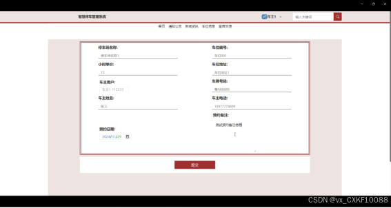 | 8-1 | 车位预约 | 选择可用车位,填写预约信息,点击预约按钮,预期成功预约车位并显示预约成功信息。 | 通过 |