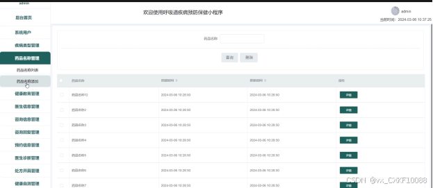 - 药品名称管理:管理员可以查看药品名称列表中某个药品的详情,可以对药品名称列表进行查询、添加和删除操作。