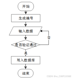 用户成功登入系统后就能够实现增加数据的操作,增加数据的编号由系统生成,用户不能随意填写,除了编号以外,其他增加信息用户自己填写,填写后的信息经过系统验证,验证通过后即可完成数据新增,数据新增的流程图如下图2-1所示。