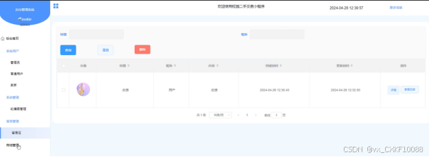 - 留言管理:管理员可以对SSM应科二手购系统中用户提交的留言以及留言的分类进行增删改查。