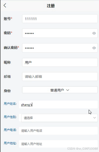 不是SSM应科二手购系统中正式会员的是可以在线进行注册的,如果你没有本SSM应科二手购系统的账号的话,添加“注册”,当填写上自己的账号+密码+确认密码+昵称+邮箱+手机号等后再点击“注册”按钮后将会先验证输入的有没有空数据,再次验证密码和确认密码是否是一样的,最后验证输入的账户名和数据库表中已经注册的账户名是否重复,只有都验证没问题后即可会员注册成功。其用会员注册界面展示如下图4-2所示。